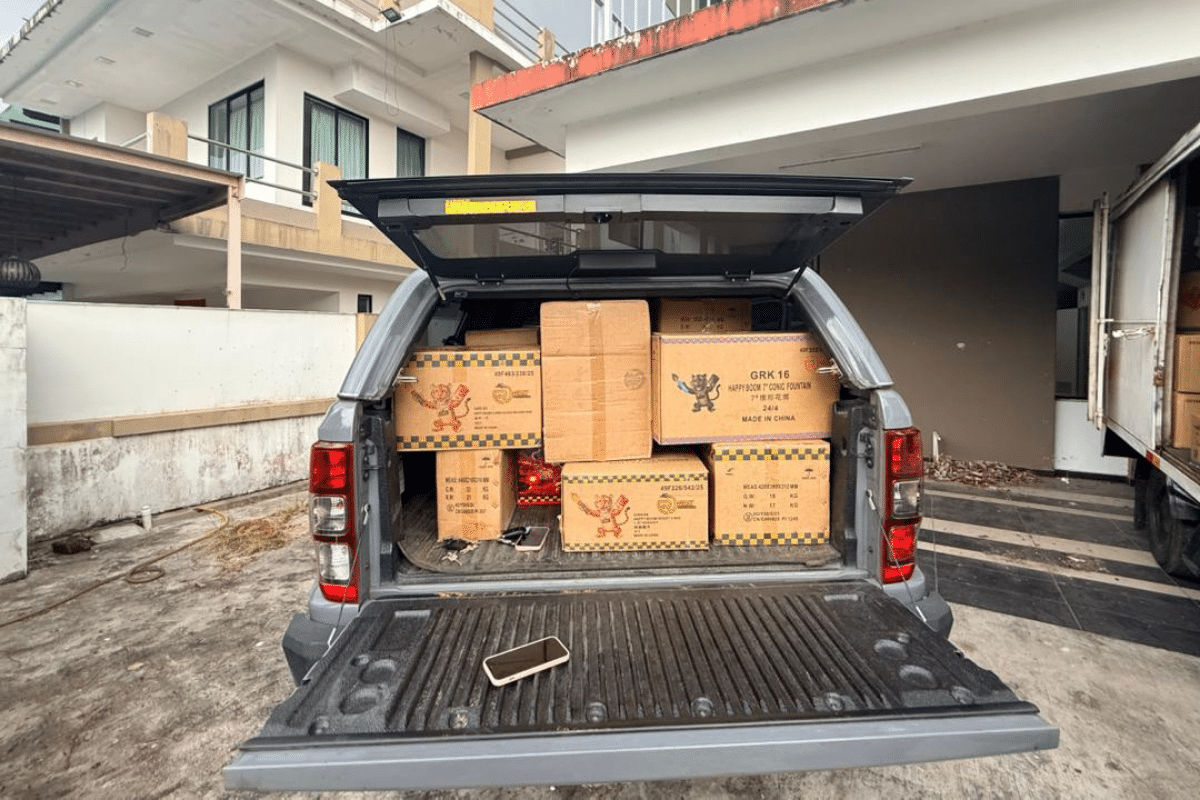 进一步调查显示,走私集团将烟花与爆竹分散存放在多间民宅,包括半独立式洋房,以便短期储存再分销,避免一次性被查获。嫌犯未持有任何合法购买、储存或分销准证,明显违反相关法规。警方强调,这种分散存放手法增加查缉难度,同时节庆前的安全风险不容小觑。